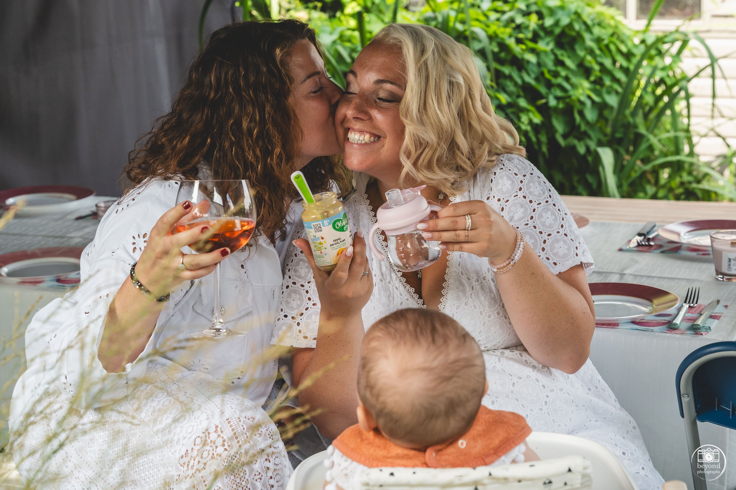Na de doop trok de familie zich terug naar de tuin van de ouders voor een gezellig feest. Tussen het lachen, de gesprekken en de spelende kinderen door, namen we de tijd om ook hier enkele mooie gezinsfoto’s te maken. Het voelde ontspannen en huiselijk. Precies zoals een familiefeest hoort te zijn.