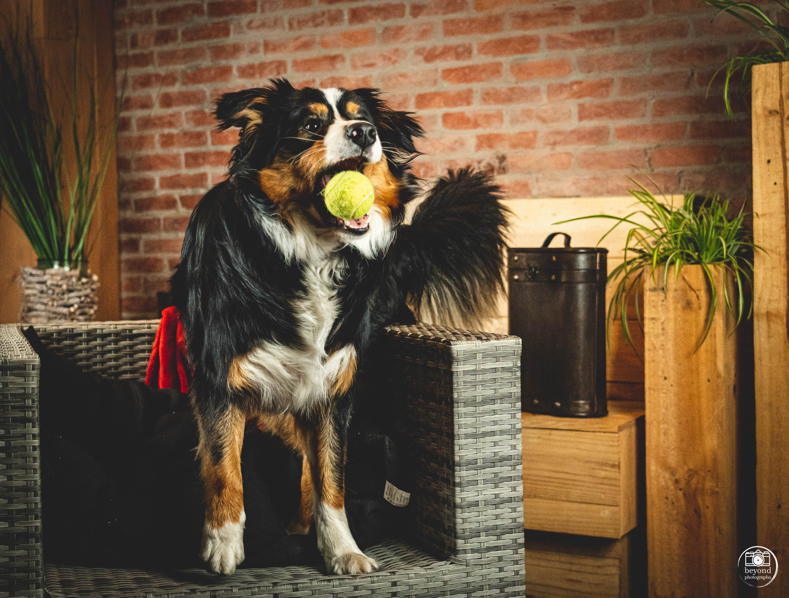 Het fotograferen van een energieke hond zoals Pixy vraagt om geduld en creativiteit. Met behulp van zijn favoriete speelbal en een paar smakelijke beloningen wisten we zijn aandacht te trekken en spontane, expressieve foto's vast te leggen. De wisselwerking tussen actie en rustmomenten zorgde voor een speelse en gevarieerde reeks beelden.