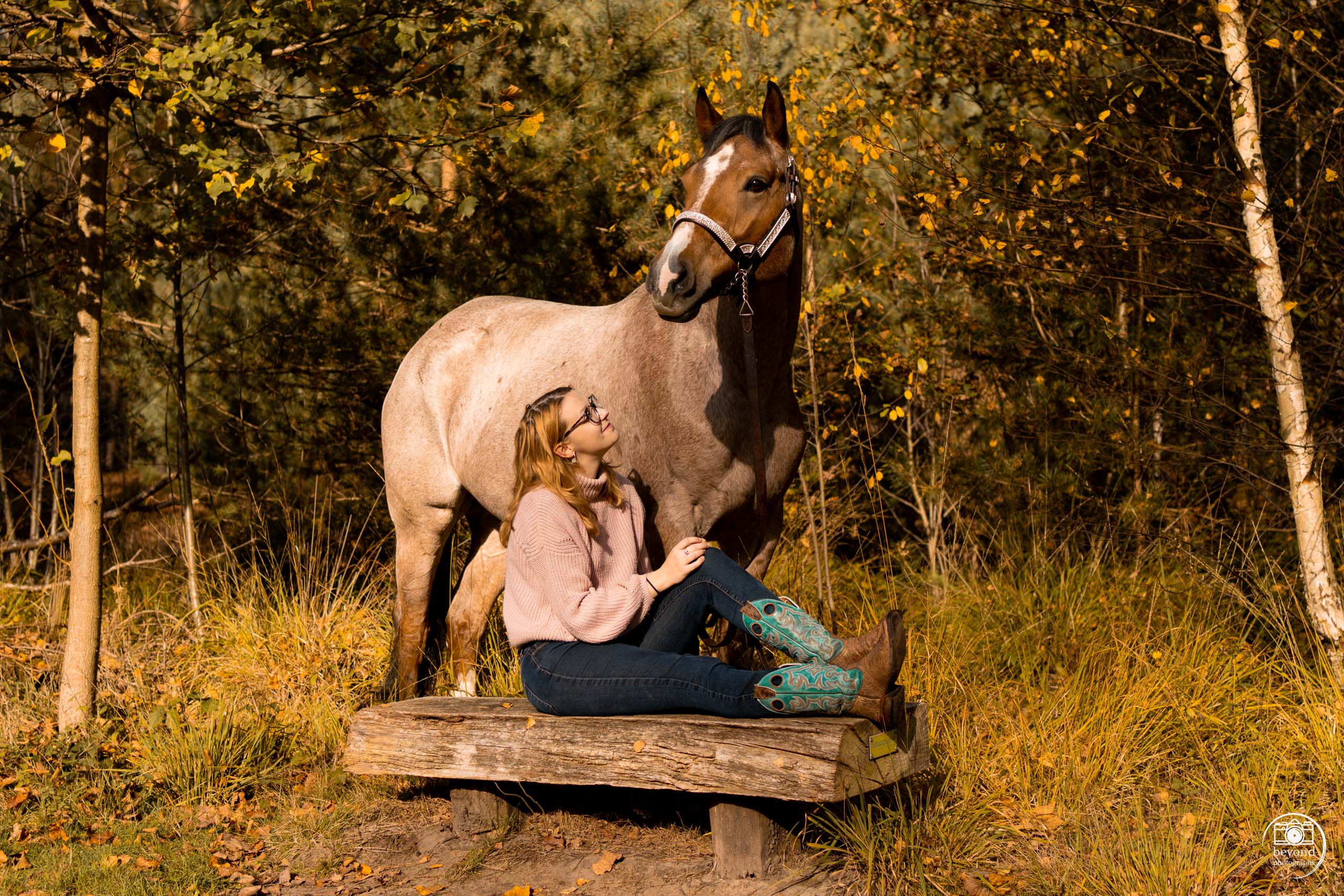 Deze inspirerende quote past perfect bij Marissa en Grace. De fotoshoot was een onvergetelijke ervaring vol plezier, verbondenheid en unieke momenten. De kleurrijke herfstbladeren vormden een schitterende achtergrond, terwijl de bijzondere band tussen Marissa en haar paard prachtig werd vastgelegd.