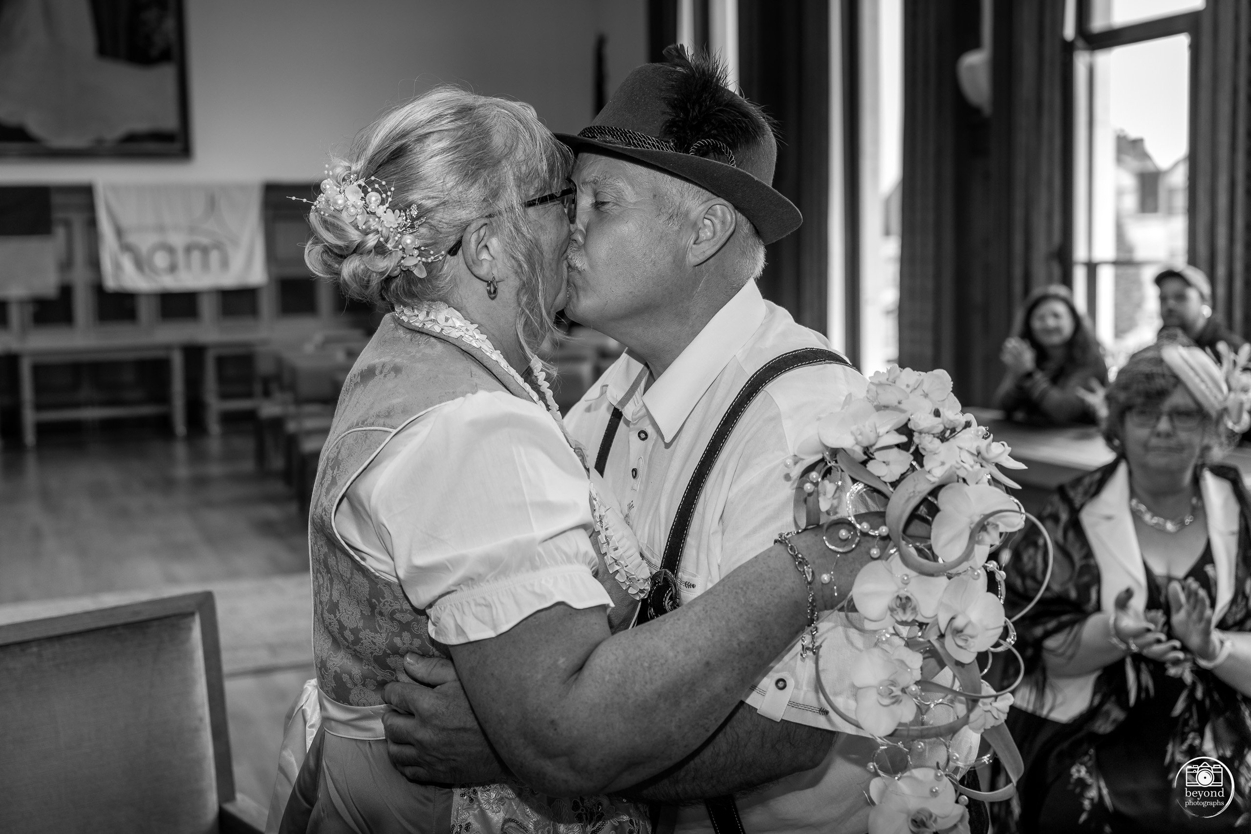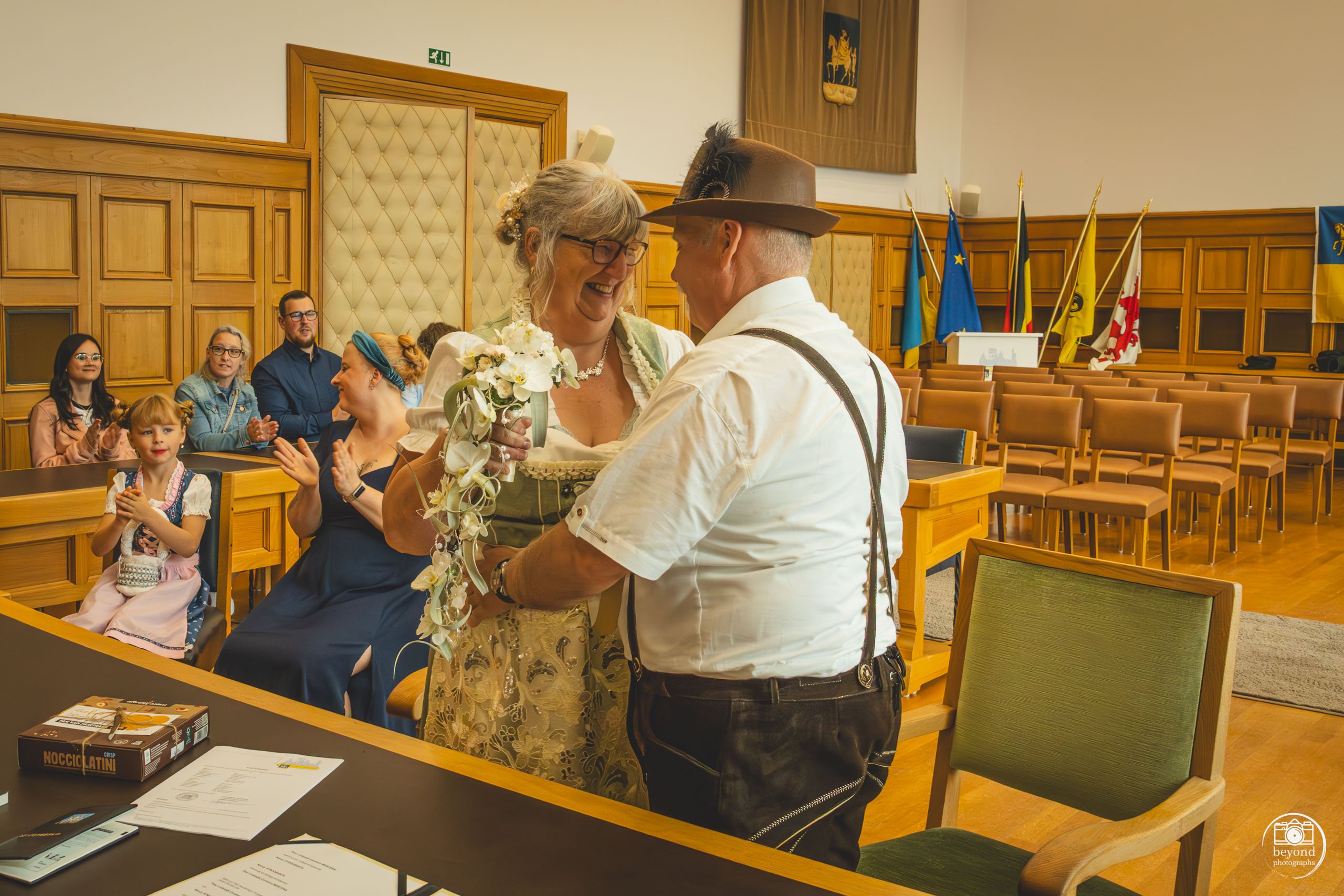 We waren erbij vanaf het allereerste moment, tijdens het klaarmaken van het bruidspaar. Wat we toen nog niet wisten, was dat er een bijzondere verrassing op ons wachtte: het koppel koos ervoor om hun volledige dag door te brengen in authentieke Tiroler klederdracht. Het was een prachtig gezicht – kleurrijk, traditioneel en totaal onverwacht. Zelfs wij, als fotografen, stonden met een brede glimlach te kijken toen ze klaar waren om te vertrekken.