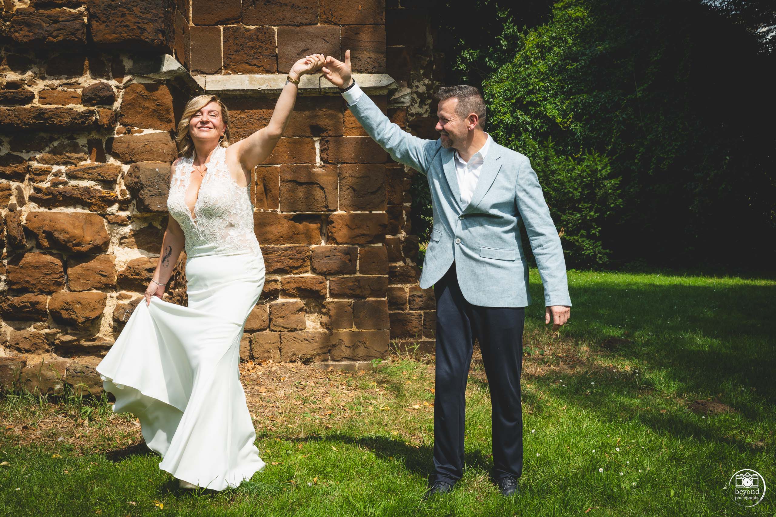 De ruïne van de oude kerk in Diest bood een adembenemend decor vol karakter. De verweerde stenen en historische uitstraling gaven de trouwfoto’s een uniek en tijdloos gevoel.